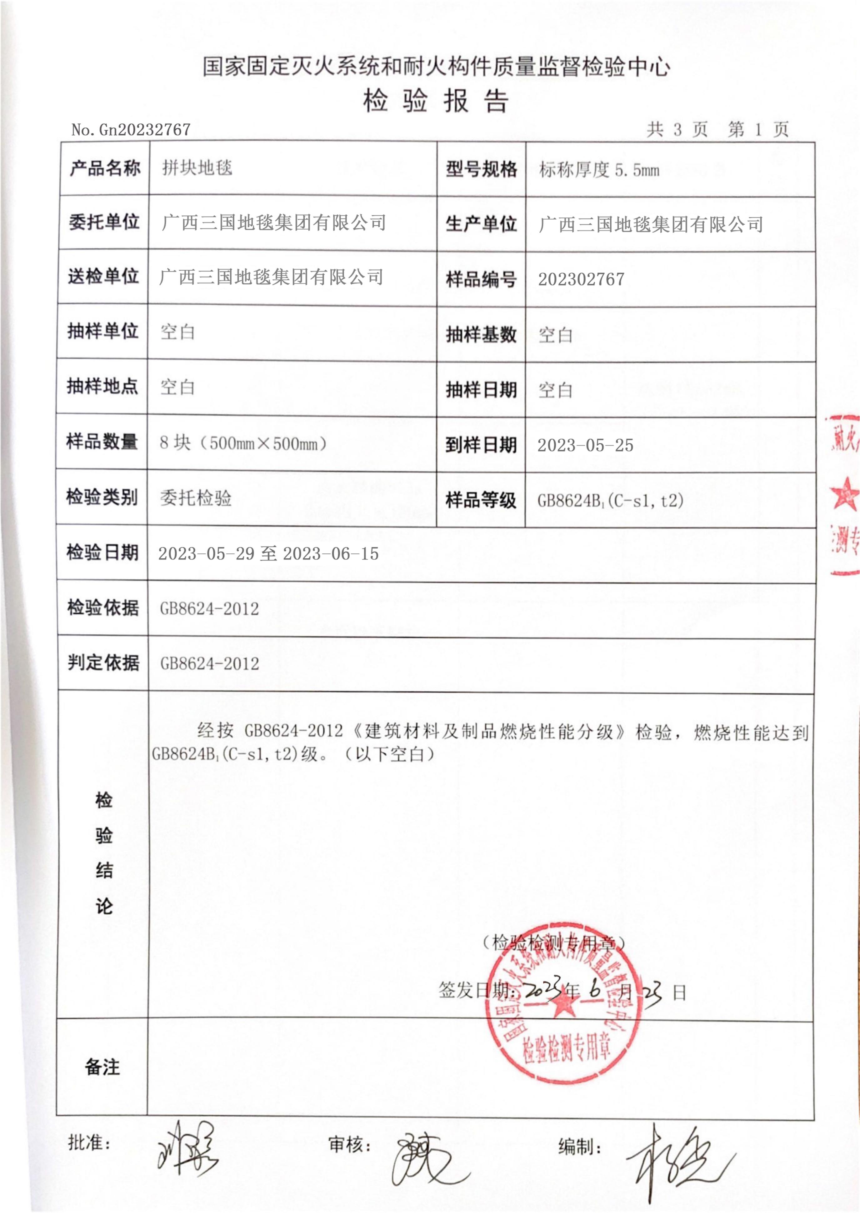 拼块地毯阻燃检测报告_01